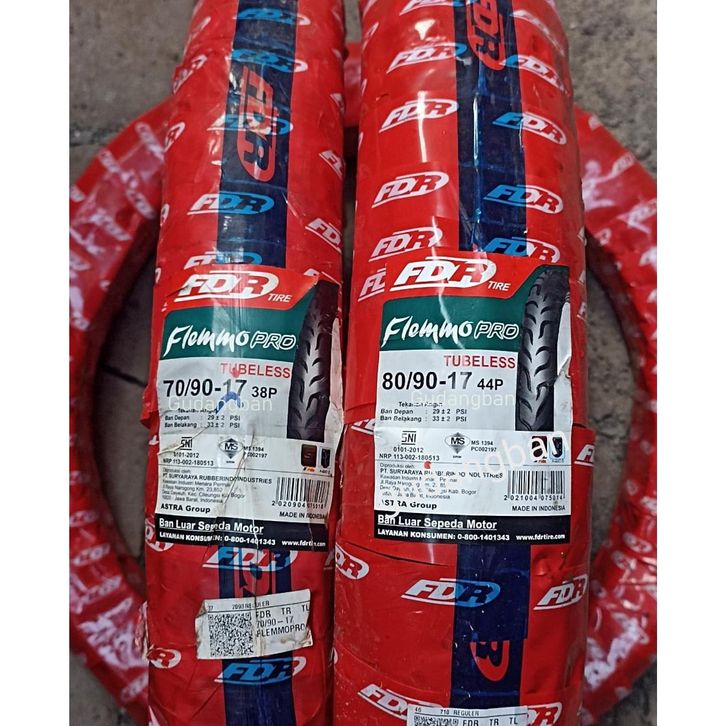 Paket FDR Flemmo Pro 70 90 17 dan 80 90 17 Tubeless Ban luar Motor Bebek FREE PENTIL