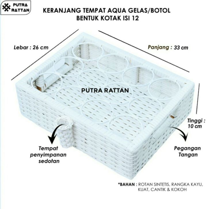 KERANJANG TEMPAT AQUA GELAS BENTUK KOTAK BAHAN ROTAN SINTETIS ISI 12
