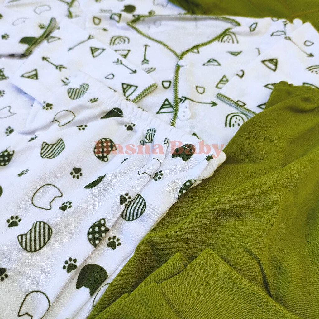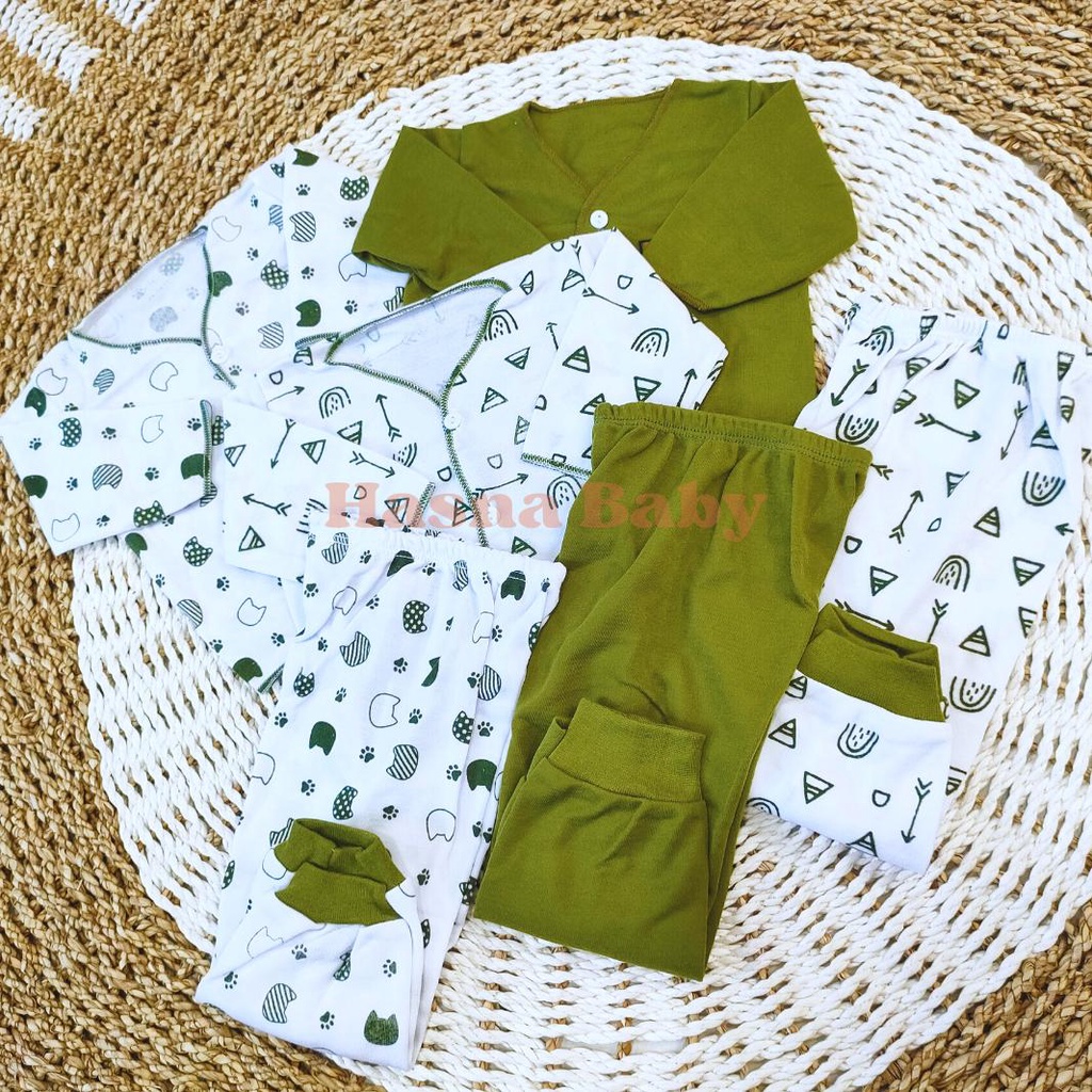 PAKET 6 PCS SNI SETELAN BAJU BAYI BARU LAHIR LENGAN DAN CELANA PANJANG SERI HIJAU OLIVE
