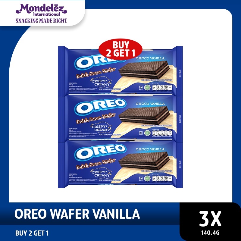 OREO BISKUIT VANILLA WAFER REGULAR 140.4G, WAFER RENYAH UNTUK CAMILAN KELUARGA - TRIPLE PACK
