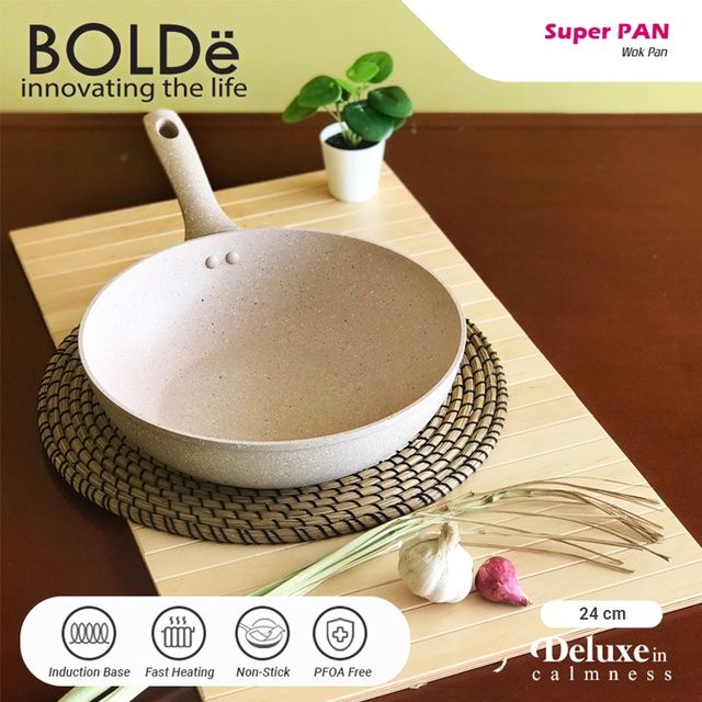 Wajan Anti Lengket Bolde Panci Super Pan Wok Granite Beige 24 Cm Multifungsi Serbaguna Original Official Store