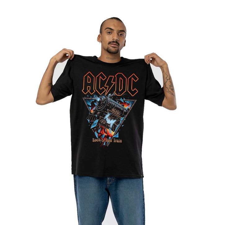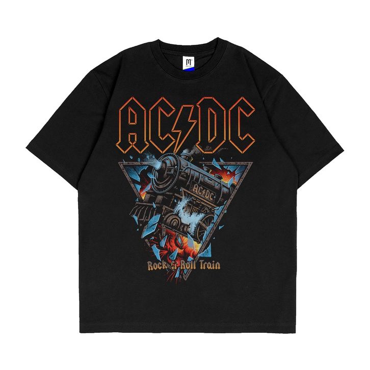 Kaos metal ACDC - ROCK N ROLL TRAIN Tshirt band baju Premium pria wanita