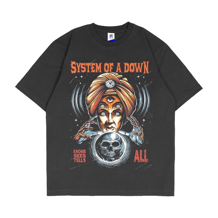 Kaos SYSTEM OF A DOWN - KNOWS SEES TELLS ALL Tshirt SOAD metal rock baju Premium pria wanita tag merchcons