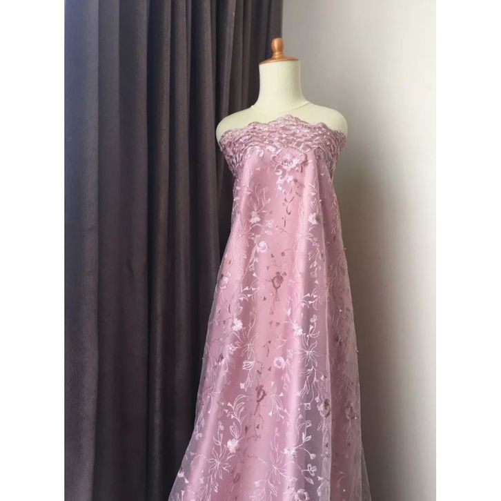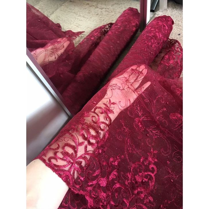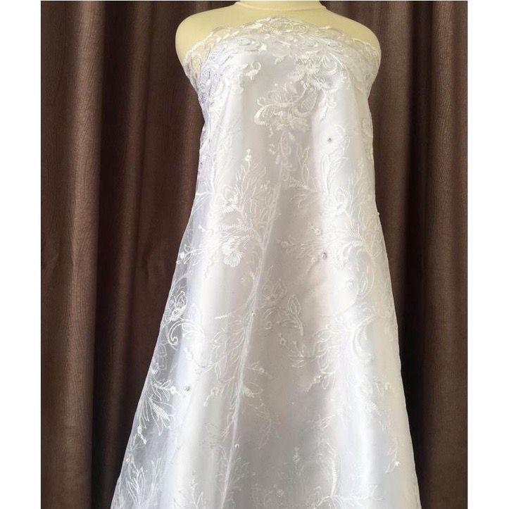 BAHAN KAIN TILE MUTIARA DOUBLE RENDA BAHAN TILE RENDA KEBAYA TILE MUTIARA TILE PINGGIRAN KAIN BAHAN TILE BRUKAT 0.5M