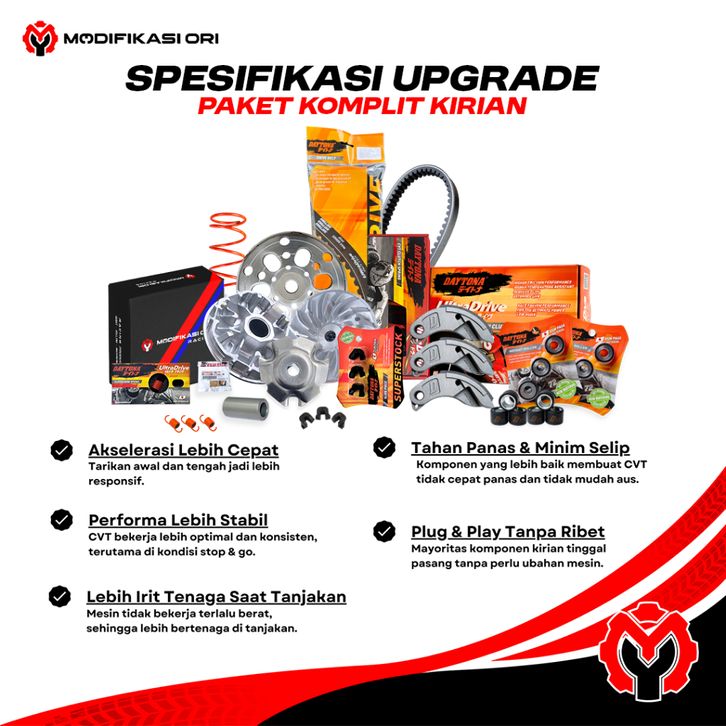 KZR - PAKET UPGRADE DAYTONA CVT VARIO 125 PAKETAN KIRIAN CVT PCX ADV VARIO 125 CVT PCX PER CVT 1500 ROLLER PAKET EXTRA