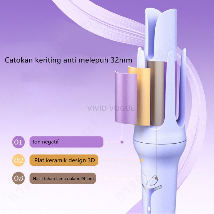 Catokan Curly Otomatis Curly Rambut Silinder besar 32mm Curling Iron Hasil Catok Tahan Lama V029