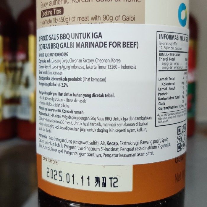 Daesang Chung Jung One Beef Galbi / Bulgogi BBQ Sauce Marinade 500 gr - BULGOGI