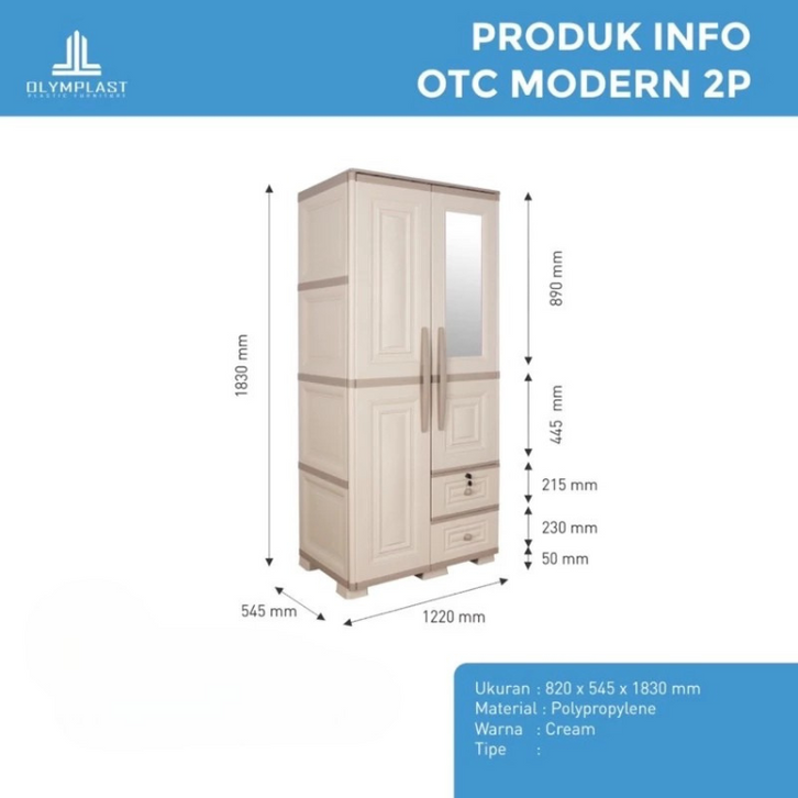 LEMARI PAKAIAN PLASTIK OLYMPLAST OTC 2P DUA PINTU MODERN KOKOH MINIMALIS