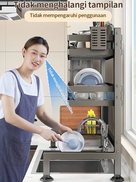 RAK CUCI PIRING WASTAFEL KABINET DAPUR 2 1 SUSUN PINTU STAINLESS STEEL MINIMALIS MODERN STENLIS BESI SERBAGUNA