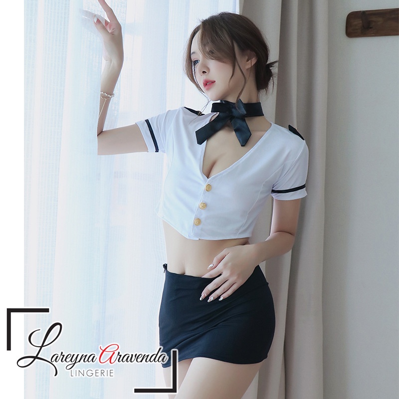 vf shop Set Lingerie + Rok Seksi Model Costume Black Stewardess LG088