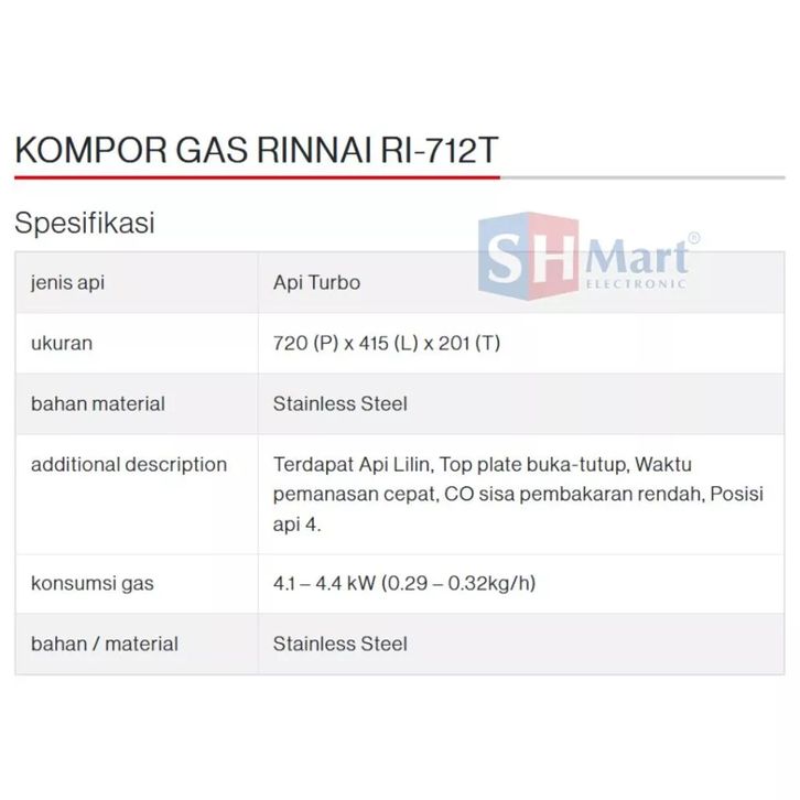KOMPOR GAS RINNAI 2 TUNGKU RI 712 T / RI-712T