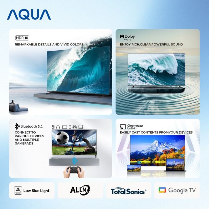 TV AQUA SMART GOOGLE TV 55 INCH H5F MEMC 4K HDR 10 DOLBY AUDIO TELEVISI DIGITAL ANDROID 50 43 40 32 IN WIFI YOUTUBE