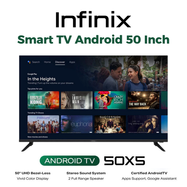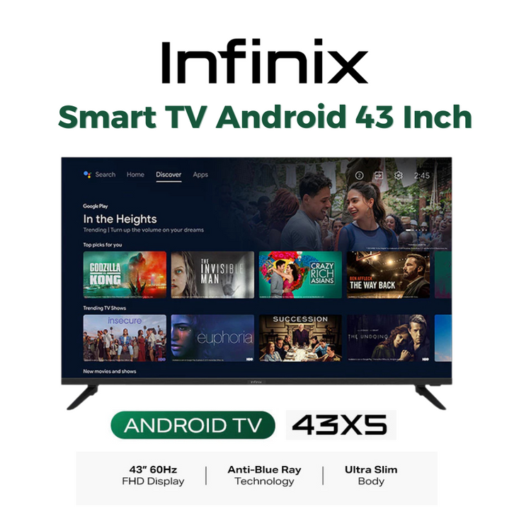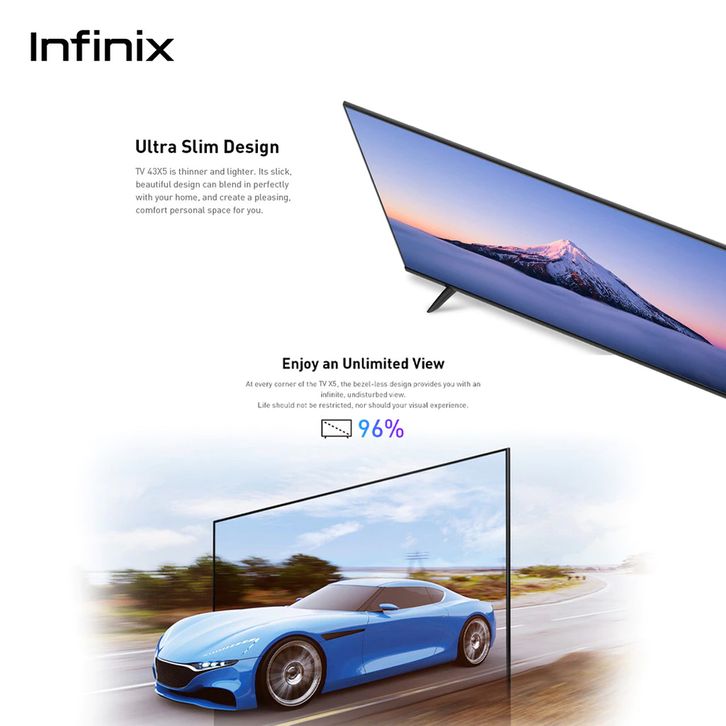 INFINIX SMART ANDROID TV 50X5 50 INCH UHD 43X5 43 IN BEZEL LESS VIVID COLOR DIGITAL LED DOLBY ULTRA SLIM ANTI BLUE RAY