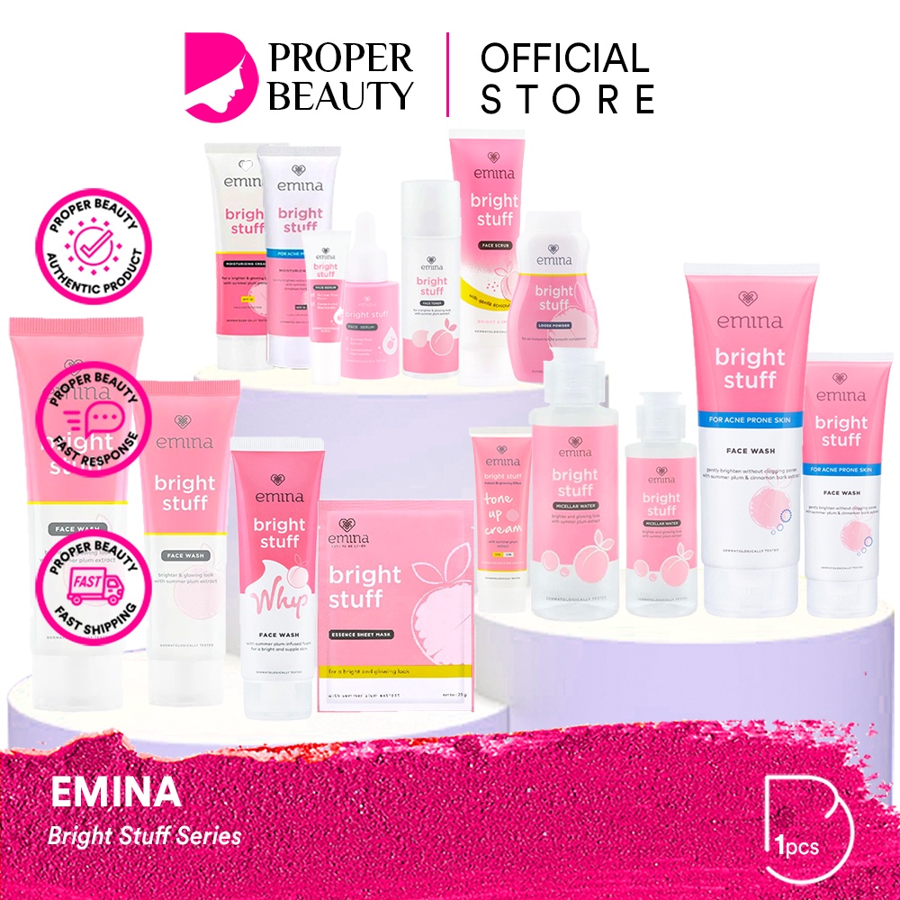 EMINA BRIGHT STUFF SERIES / FACIAL WASH FACE SCRUB MICELLAR WATER ESSENCE TONER MIST SERUM DAY NIGHT