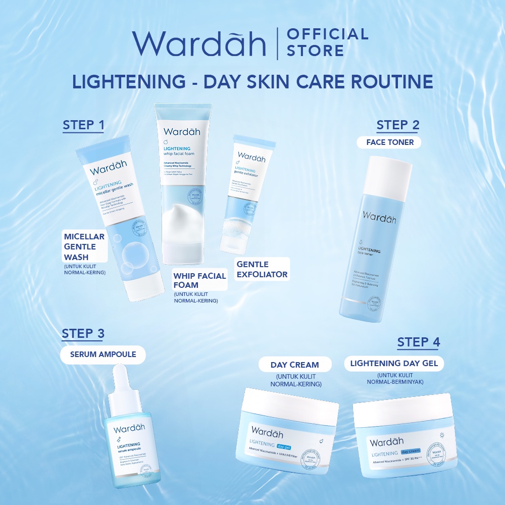 WARDAH LIGHTENING FACE SERIES SERUM FACE TONER WHIP FACIAL MICELLAR GENTLE WASH WARDAH LIGHTENING SERIES