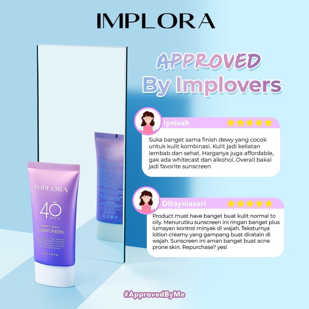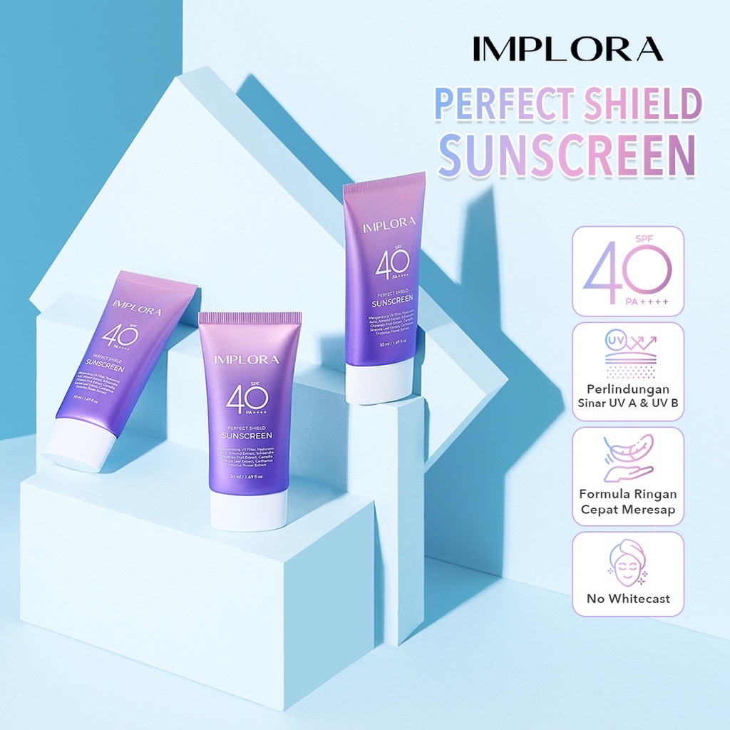 IMPLORA PERFECT SHIELD SUNSCREEN SPF 40 PA+++ SUNBLOCK WAJAH 50ML SUN CARE TABIR SURYA