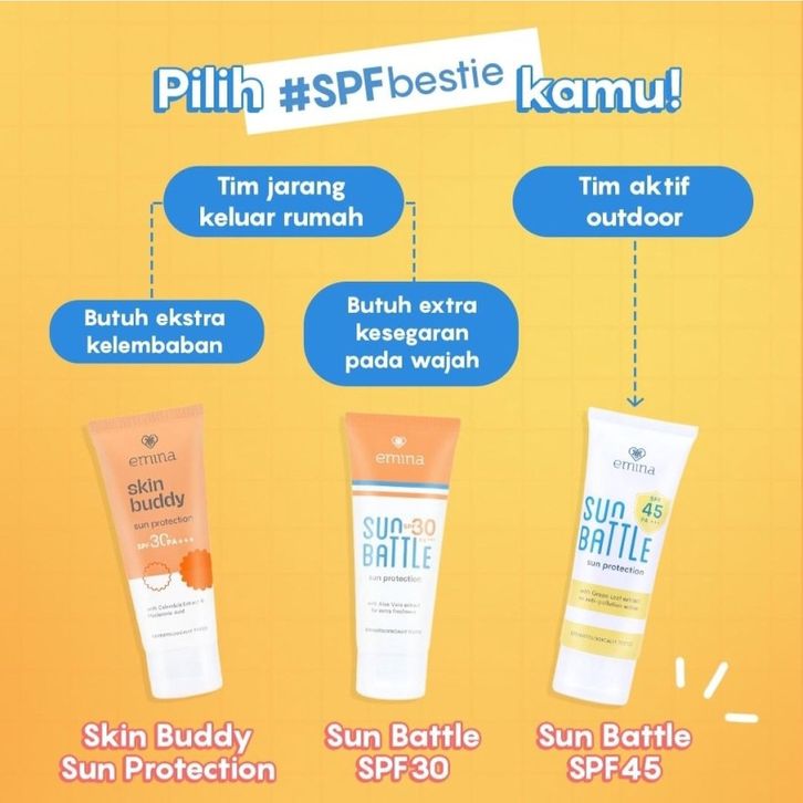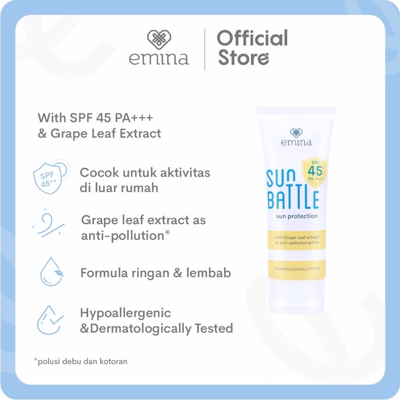 ORIGINAL SUNBLOCK EMINA SUN PROTECTION SUNSCREEN SUN BATTLE SPF 30 45 SUNBLOCK WAJAH DAN BADAN SUNBATTLE