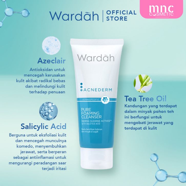 WARDAH ACNEDERM PURE FOAMING CLEANSER 60 ML FACE WASH PEMBERSIH WAJAH