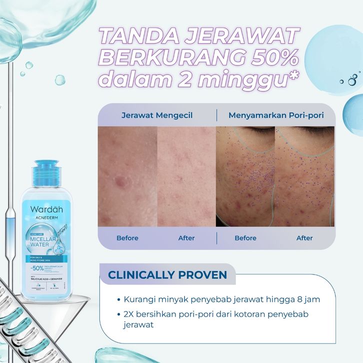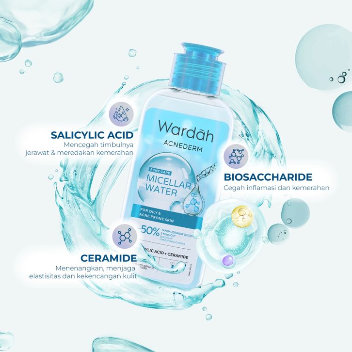 WARDAH ACNEDERM ACNE CARE MICELLAR WATER 100ML EFEKTIF TANDA JERAWAT BERKURANG PEMBERSIH WAJAH