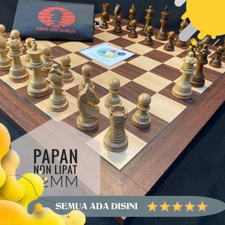 Catur Kayu Set Premium Papan Non Lipat Bidak Standar PERCASI Bagus Top