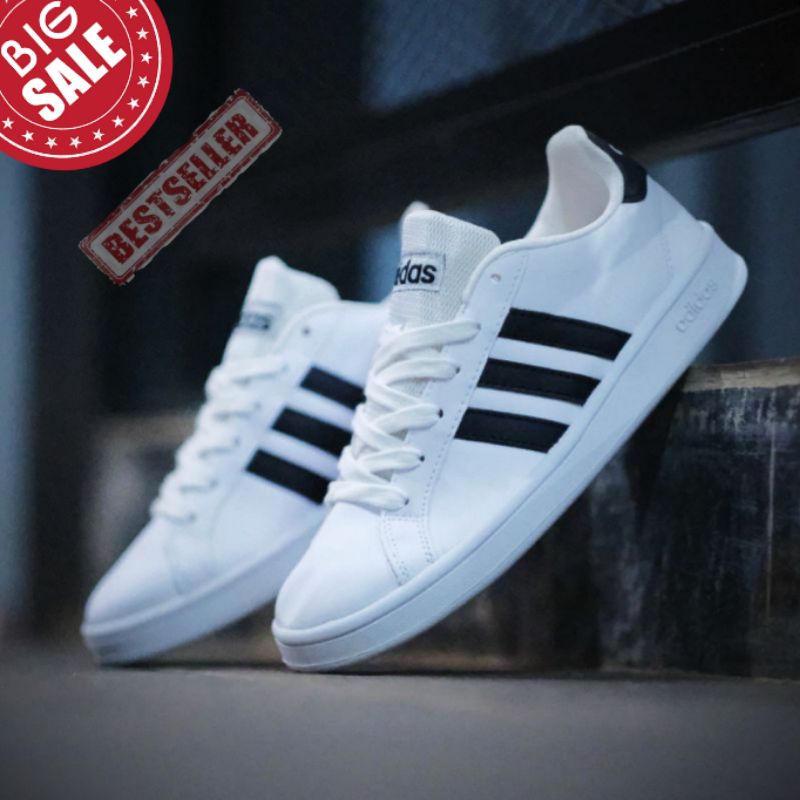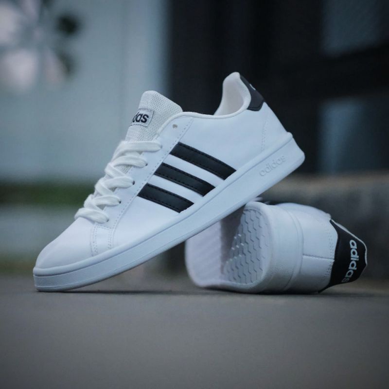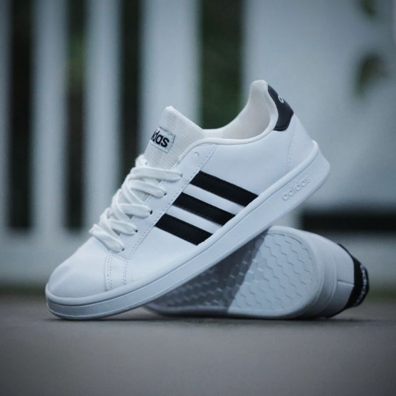 SEPATU SNEAKERS ADS GRAND COURT WHITE BLACK ORIGINAL SNEAKERS PRIA