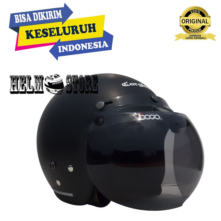 HELM CARGLOSS CFM CARGLOSS RETRO SOLID BLACK DOFF HELMET BOGO RETRO ORIGINAL
