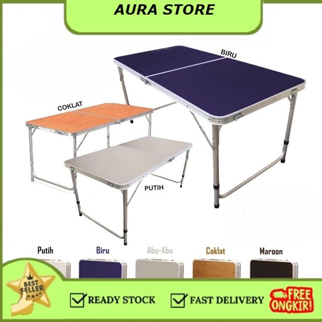 FREE ONGKIR- Meja Lipat Portable / Meja Lipat Serbaguna Uk 120cm x 60cm Model Kaki Bulat Meja Camping Outdoor Meja Juala