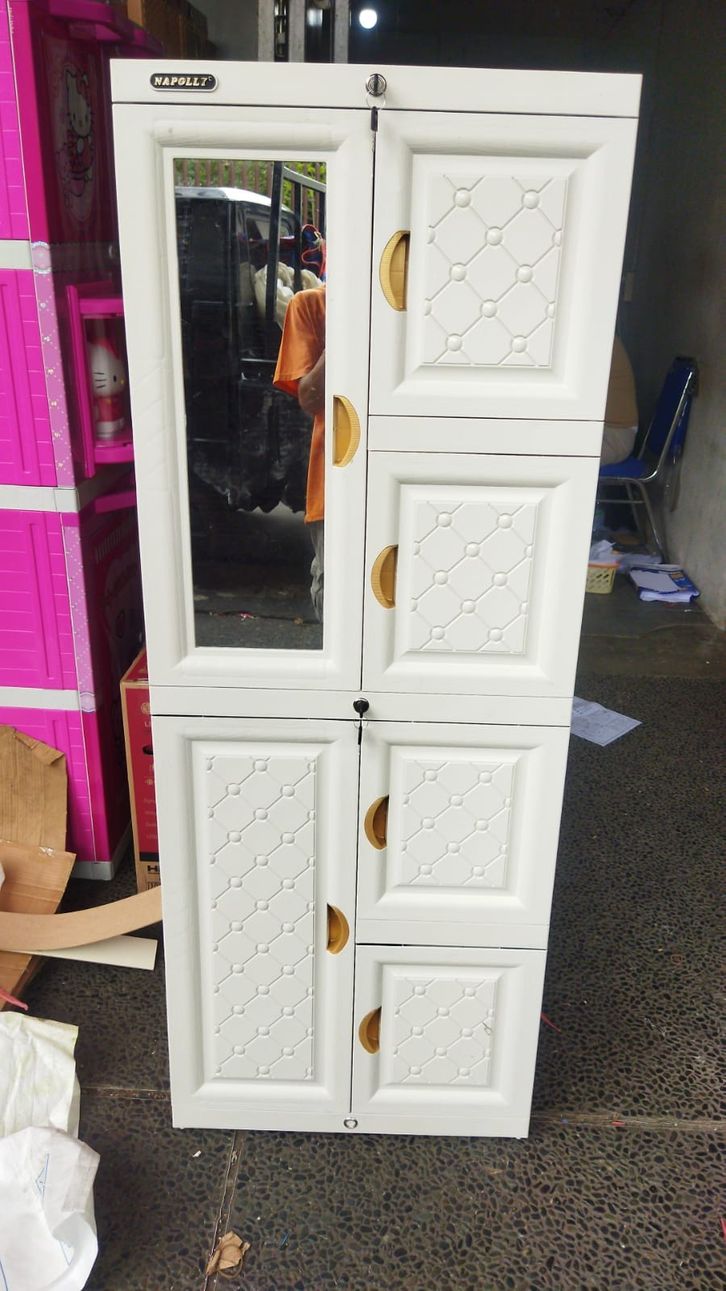 Lemari Baju 2 Pintu Plastik Napolly Putih Minimalis Kaca MCAB-46C Ion