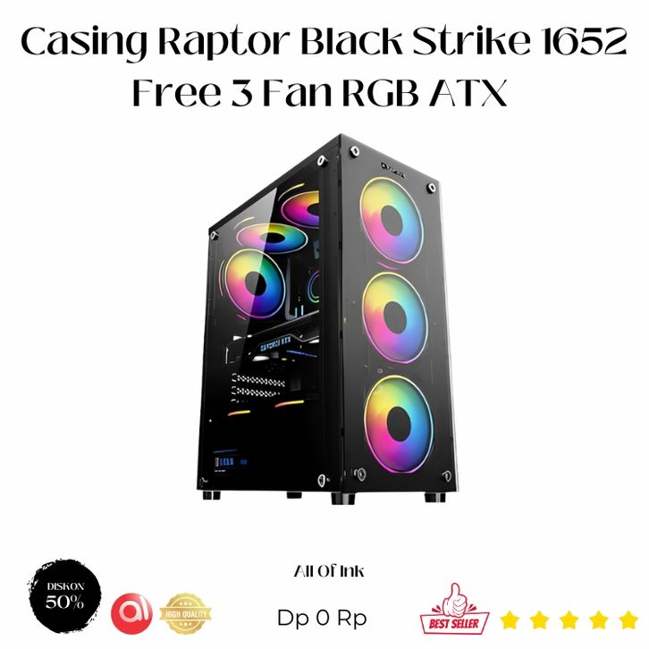 Promo Casing Raptor Black Strike 1652 Free 3 Fan RGB ATX casing Komputer casing cpu Terlaris