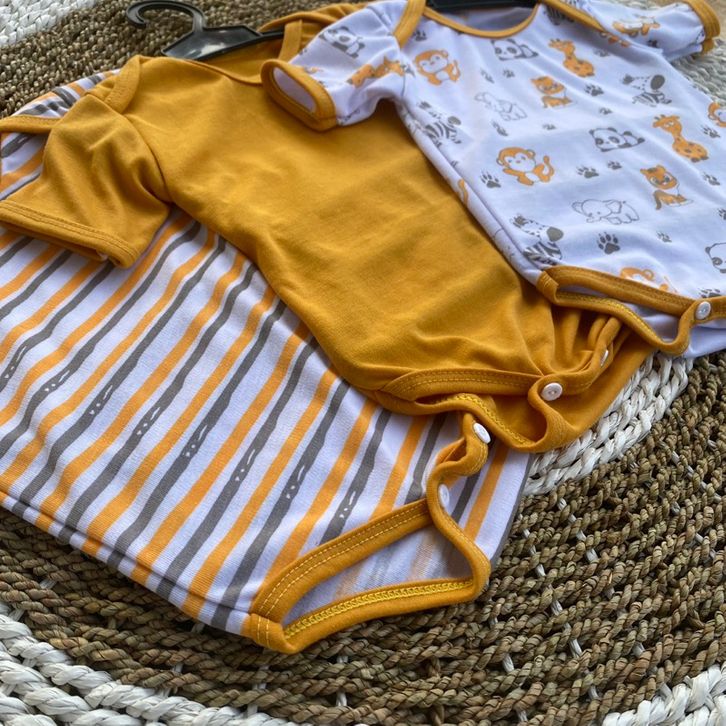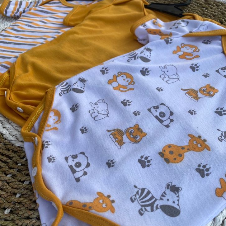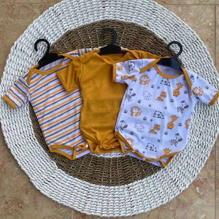 3 PCS BAJU BAYI JUMPER SET KUNYIT JERAPAH MOTIF TERBARU BAJU BAYI SET NEWBORN 0-3 BULAN BARU LAHIR
