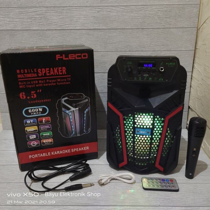 Speaker Bluetooth Fleco F3362/FL611/FL612 Microphone Karaoke/Salon Aktif Wireless Subwoofer 6,5Inch
