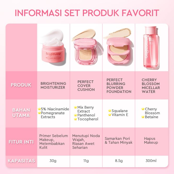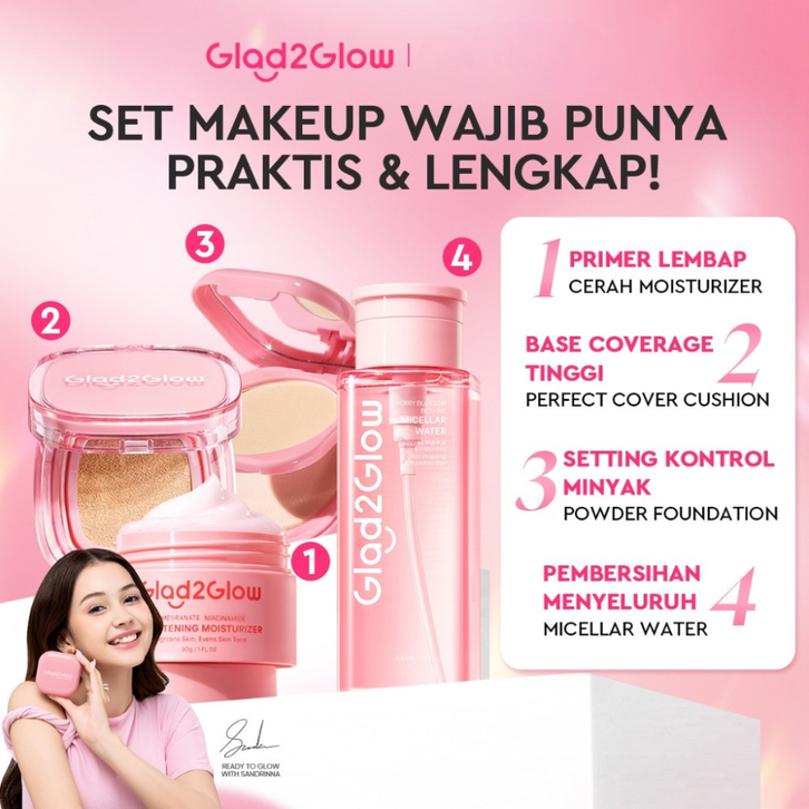GLAD2GLOW PERFECT BLURRING POWDER FOUNDATION COVER CUSHION SETTING WATERPROOF BEST SELLER MURAH PROMO
