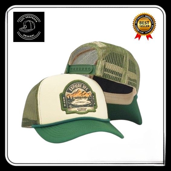 Topi Pria Original Distro Wankbay Trucker Hat Plastisol Explore Life White Green