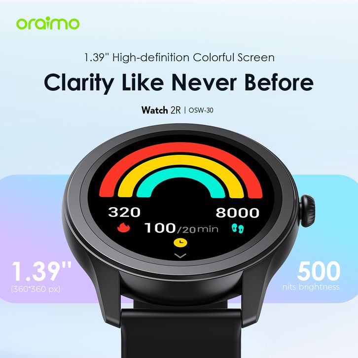 Oraimo Smart Watch 2R 1.39" Screen Colorful Jam Tangan Pintar Bluetooth Wireless BT Calling IP68 Waterproof OSW-30
