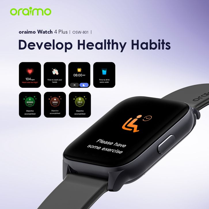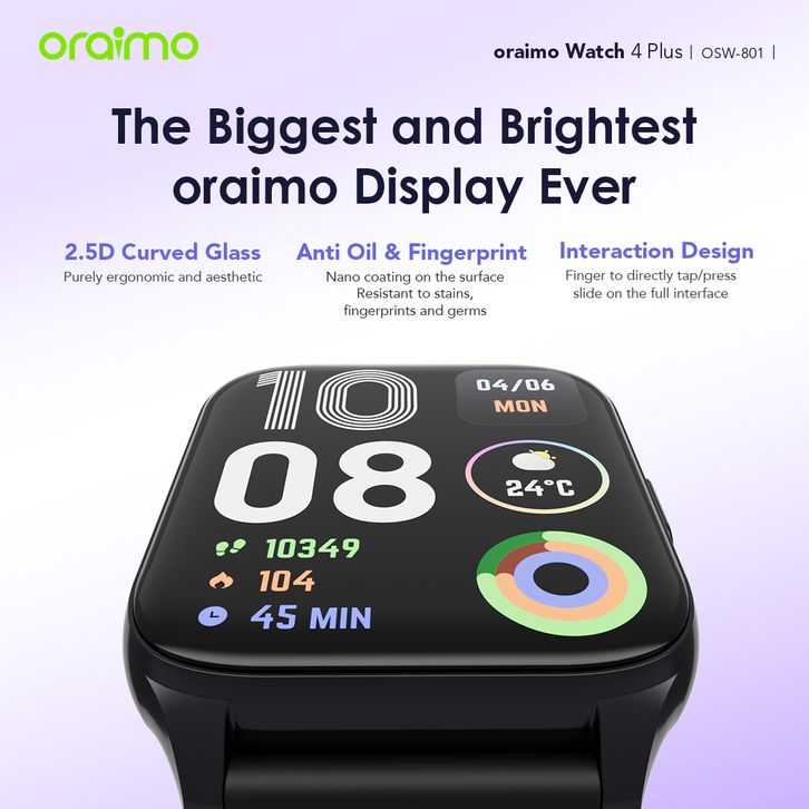 Oraimo Watch 4 Plus Smartwatch 2..01'' Large Screen Jam Tangan Pintar Wireless Bluetooth Call Long Battery life OSW-801