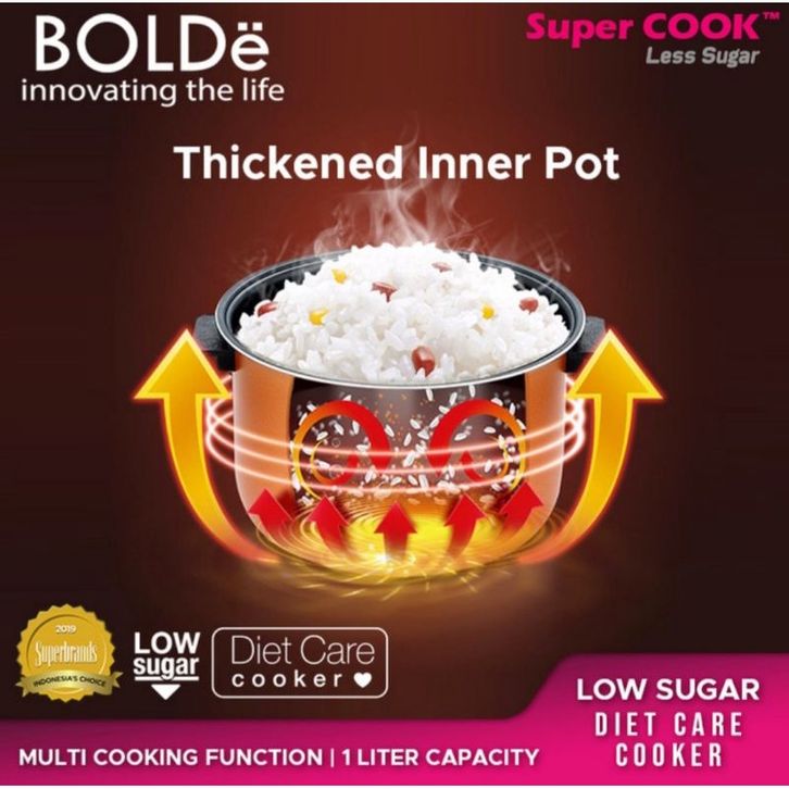 MAGIC COM DIGITAL BOLDE SUPER COOK LESS SUGAR 1L RICE COOKER LOW CARBO LOW WATT NEW ORIGINAL GARANSI RESMI MURAH NO DP 0