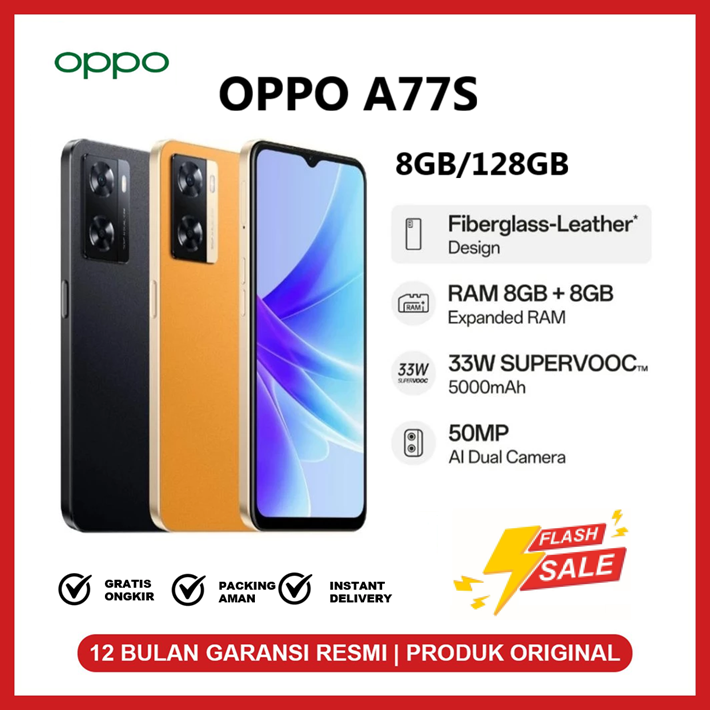 HP OPPO A77 S 8/128GB GARANSI RESMI Snapdragon™ 680 Kamera utama 50MP 33W SUPERVOOCTM