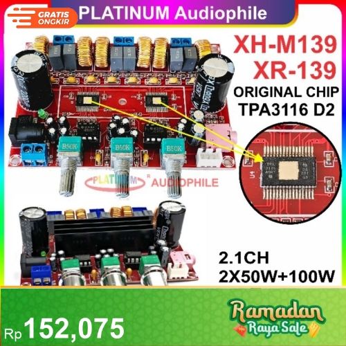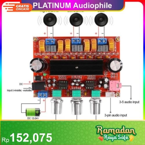 Kit Power Amplifier Stereo Subwoofer Mini Class D HiFi 2.1 Texas Audio TPA3116D2 Chip Original 32pin 2X50W + 100W