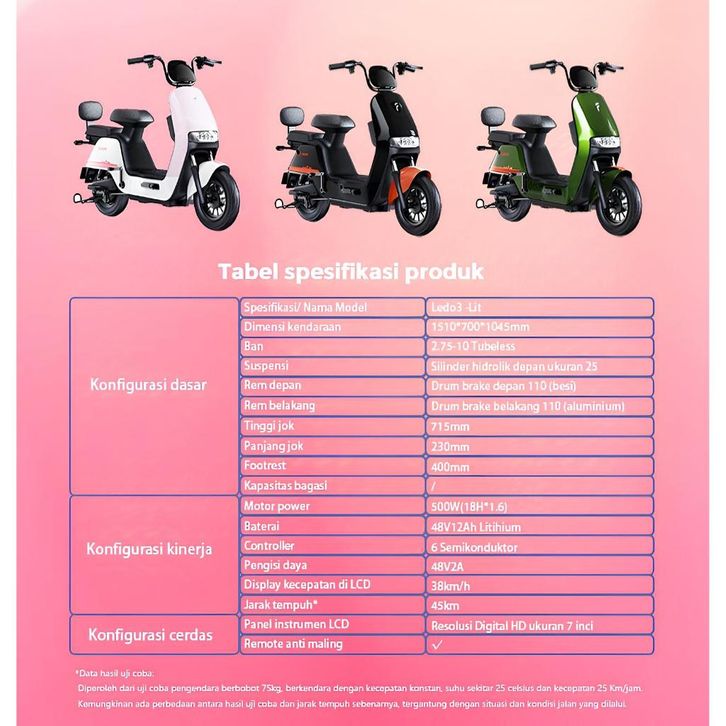 OFERO SEPEDA MOTOR LISTRIK LEDO 3 LIT (LITHIUM) POWER 500 WATT TAHAN LAMA KUAT HEMAT ENERGI MODERN GARANSI RESMI