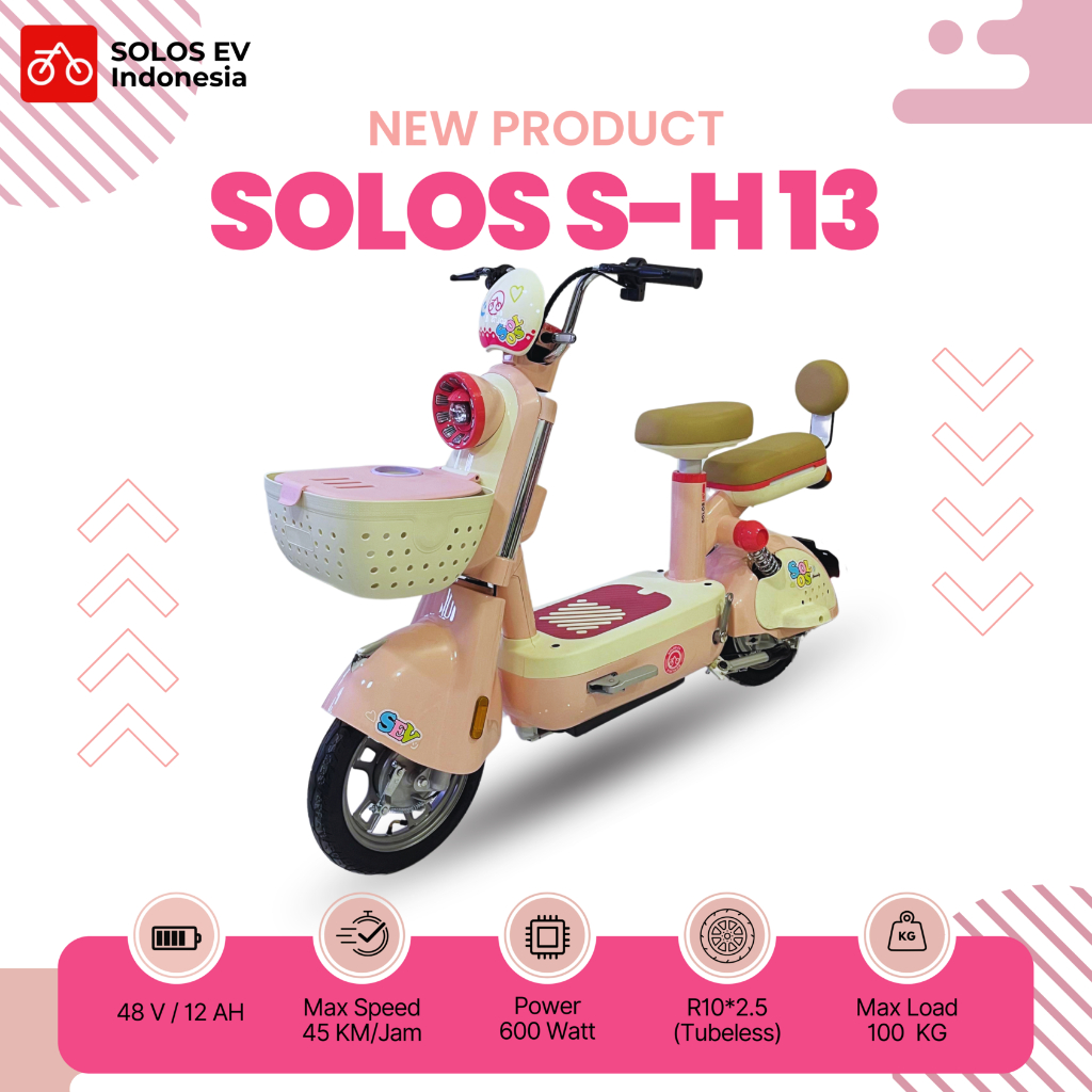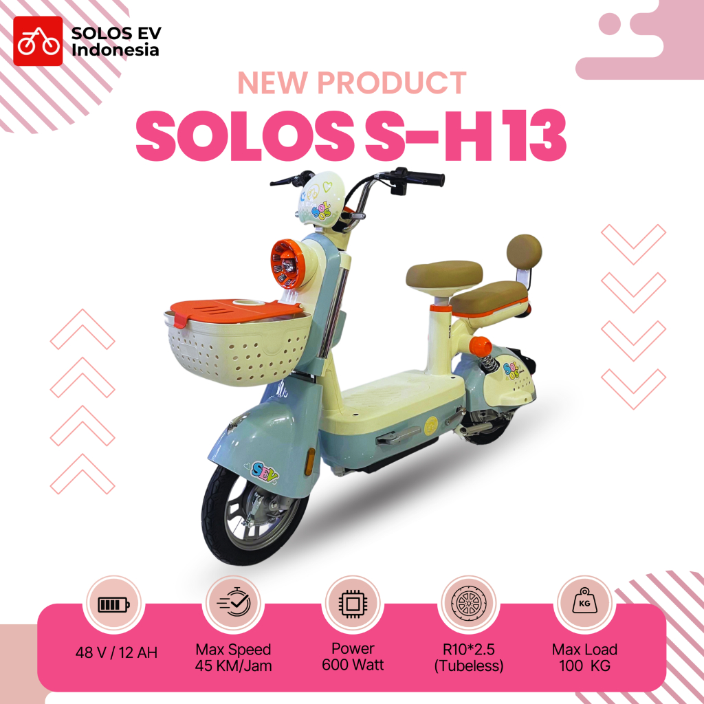 SEPEDA LISTRIK PREMIUM SOLOS S-H13 ELEGANT & CANTIK MURAH TERBARU