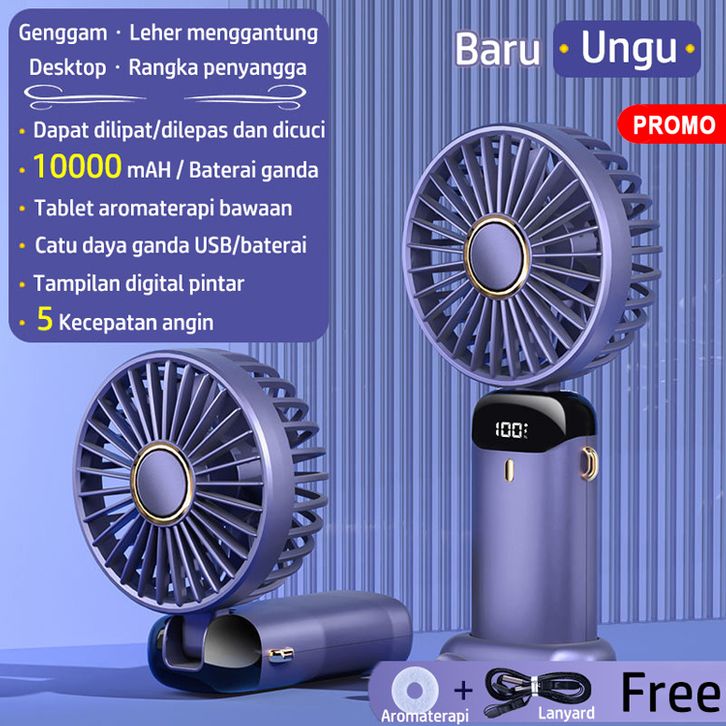 Kipas Angin Mini Portable USB 10000mAh Kipas Lipat/Leher 5 Speed Wind LED Display Dengan Aromaterapi - Free Ongkir