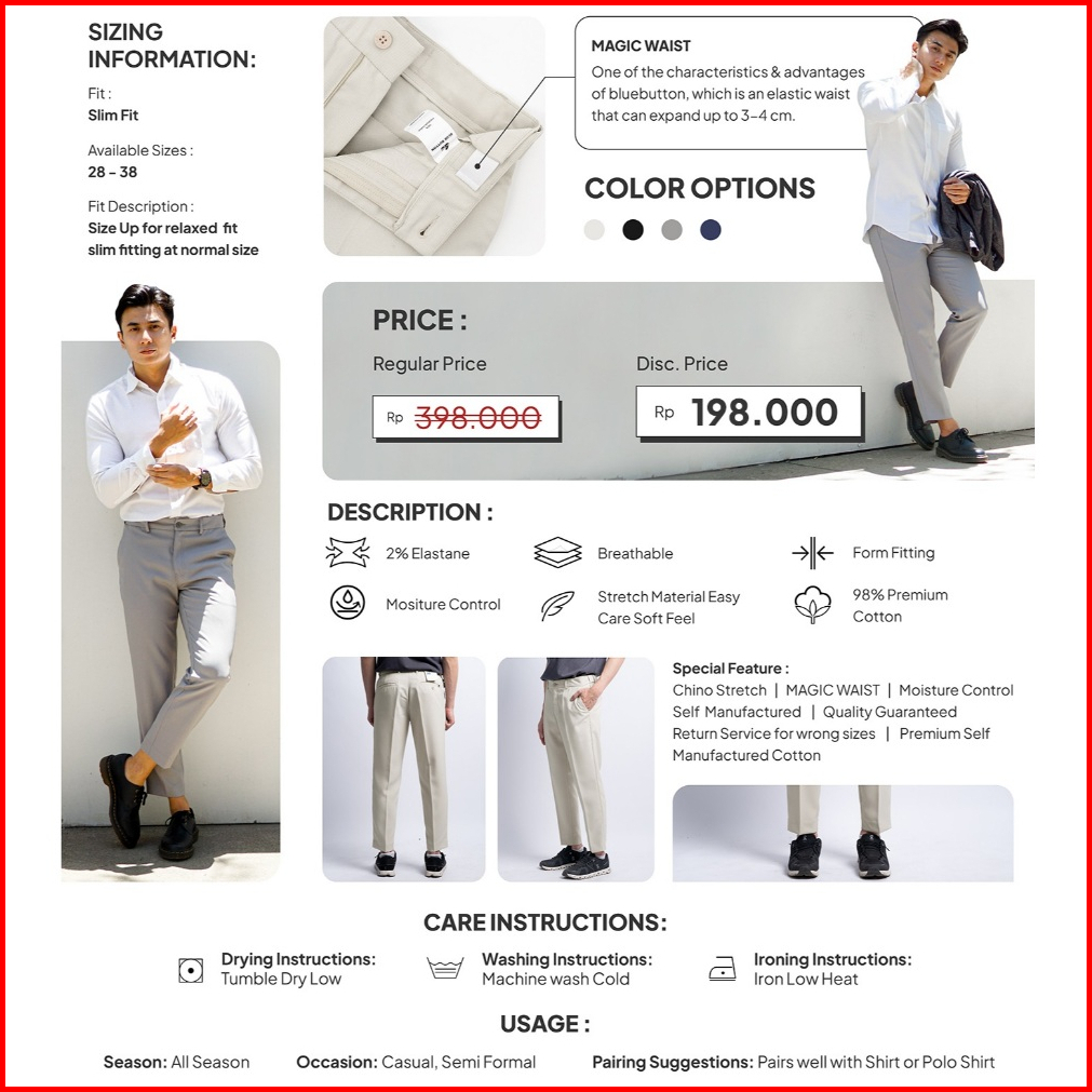 Bluebutton Celana Bahan Pria Slim Fit Ankle Pants Air
