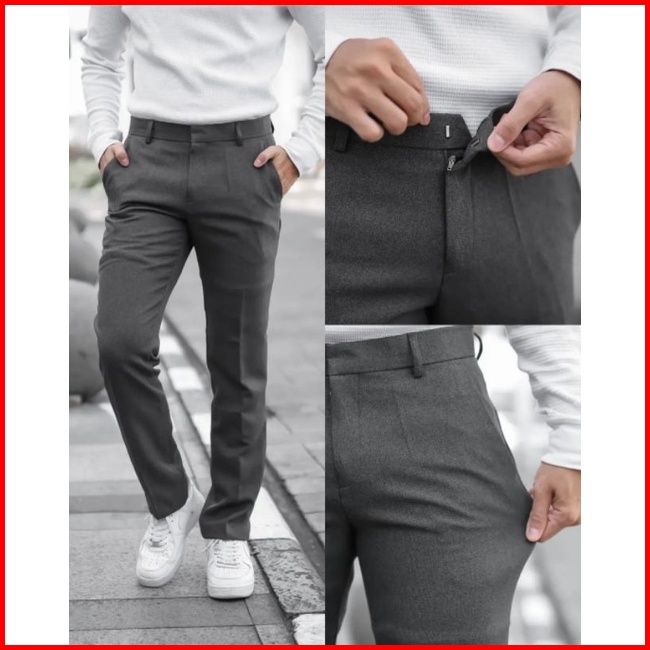 Celana Kantor Formal Pria Slimfit Bahan Dasar Kain Woll Kualitas Premium