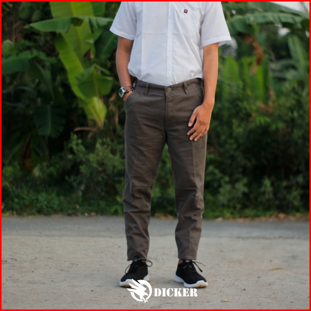 Celana Panjang Kerja Pria Slim Fit Bahan Katun Kanfas Jumbo Formal Pria Dewasa