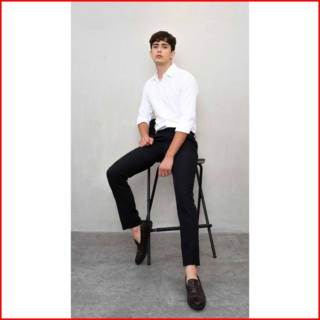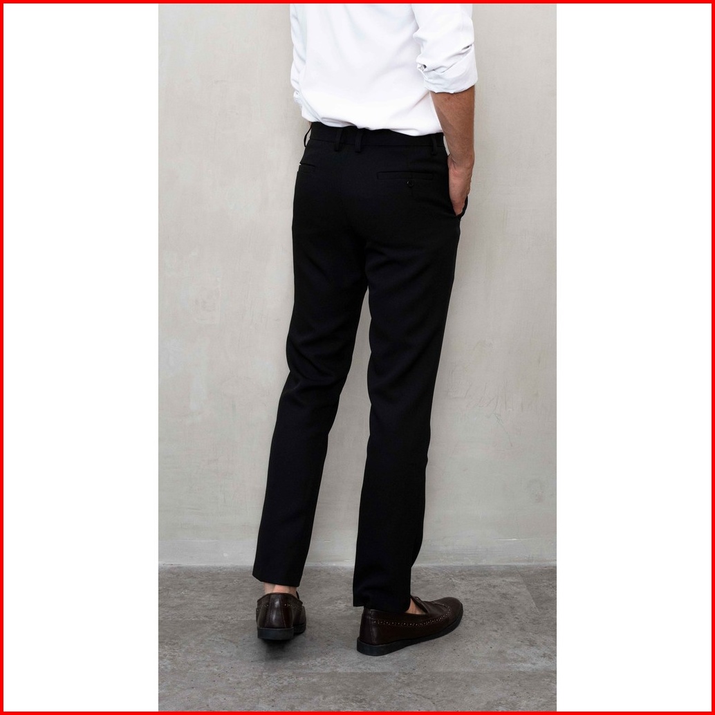 Big Size Celana Bahan Formal Kerja Kantor Hitam Polos Slim Fit Black Trouser