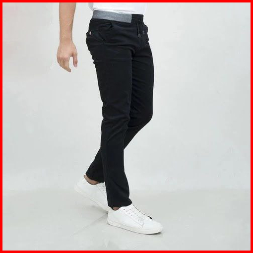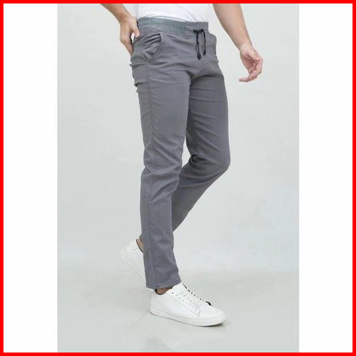 Celana Chinos Cowok Panjang Karet Pinggang Rip Kolor Bahan Stret Melar