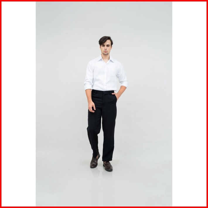Celana Bahan Panjang Hitam Kerja Pria Besar Model Regular Standard