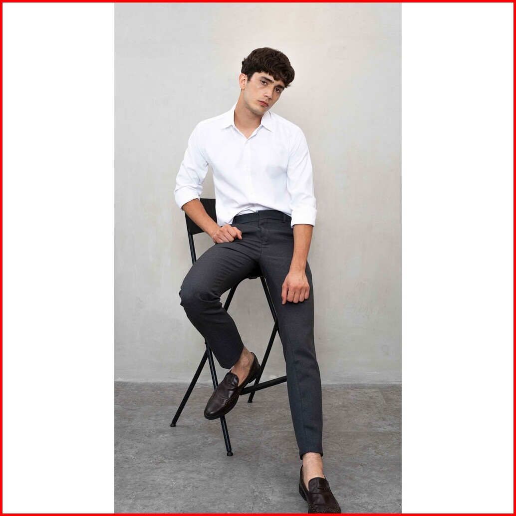 Houseofcuff Celana Bahan Kerja Kantor Big Size Formal Slim Fit Grey Trouser Panjang Kerja - Abuabu