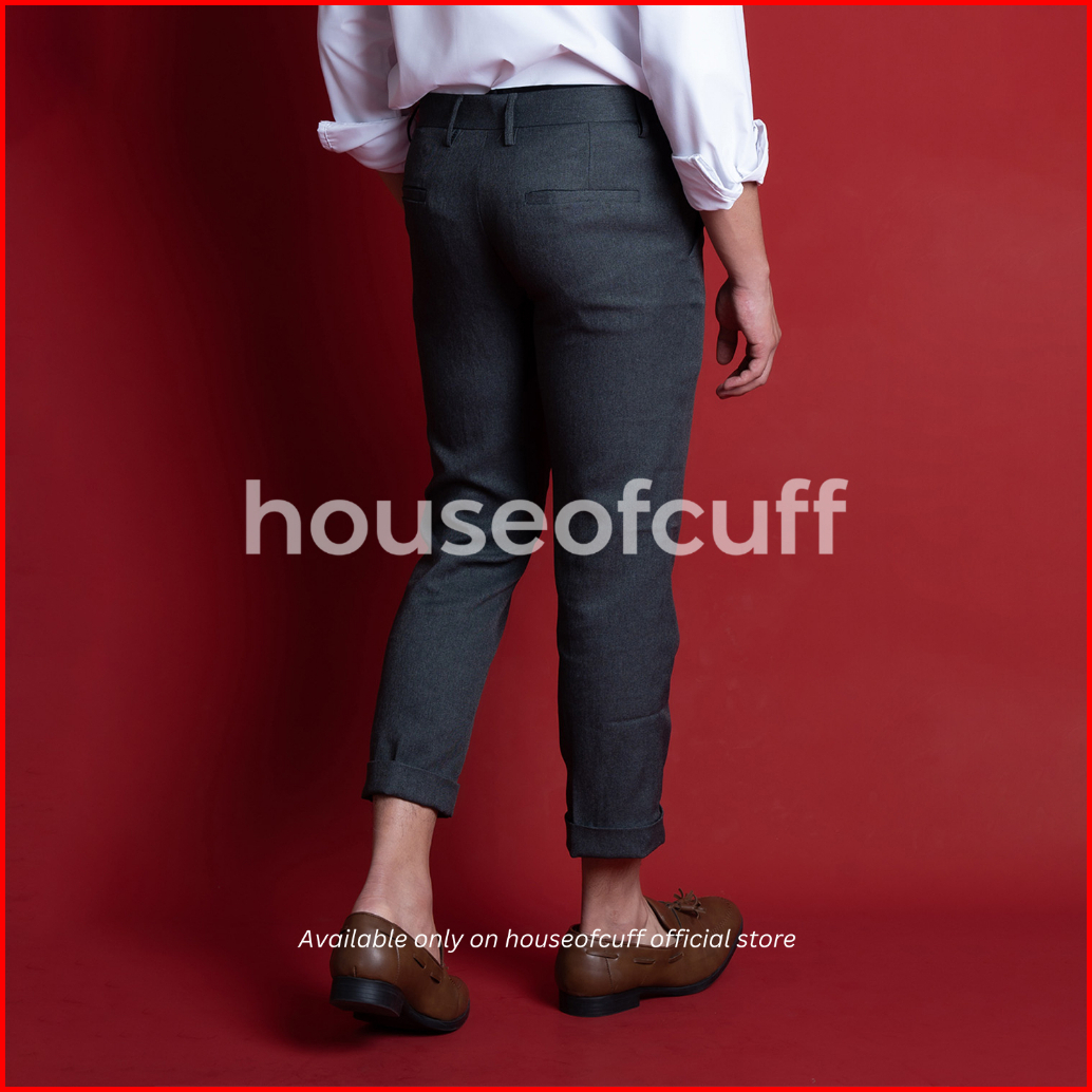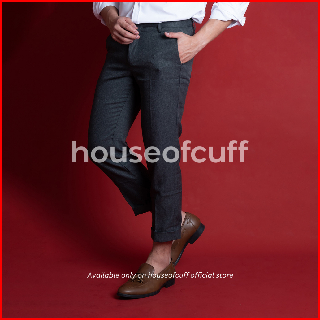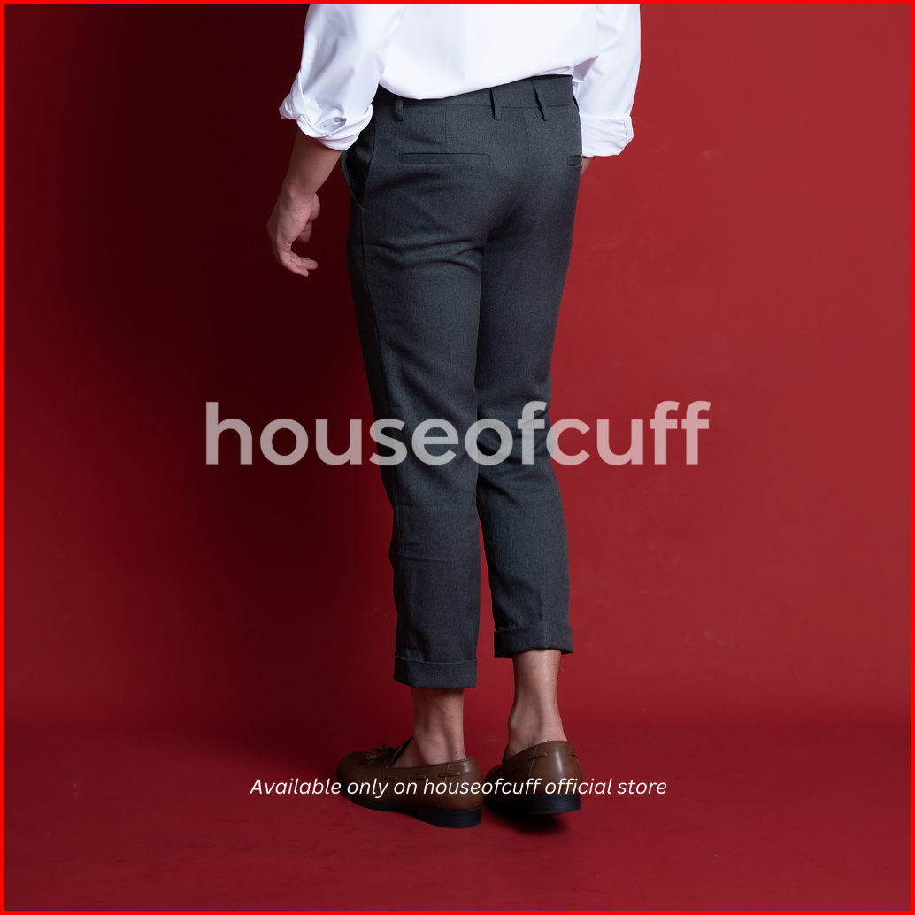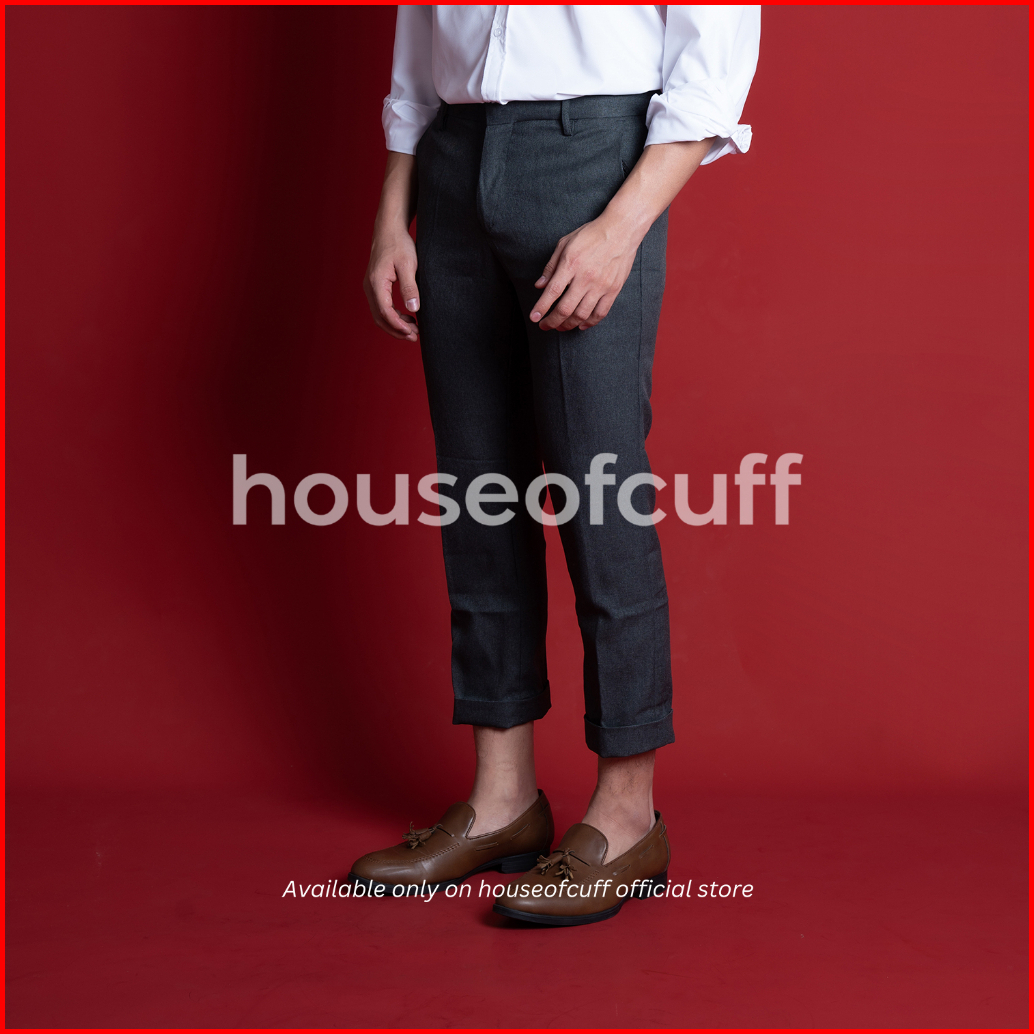Houseofcuff Celana Ankle Cropped Pants Slim Fit Celana Kerja Bahan Sirwal Abu Tua