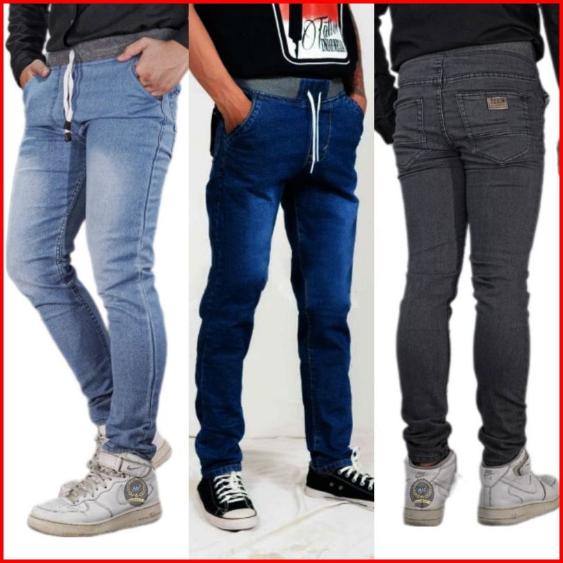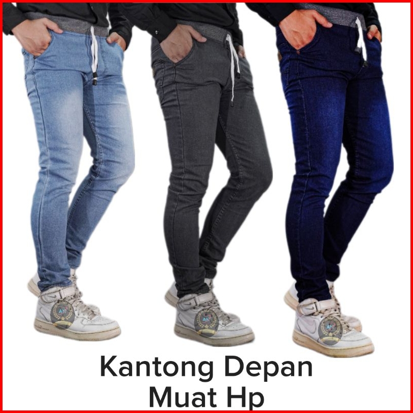 Celana Jeans Pria Panjang Bahan Melar Stretch Pinggang Melar Karet Cowo Cowok Big Sale Ramadhan Celana Jeans Pria